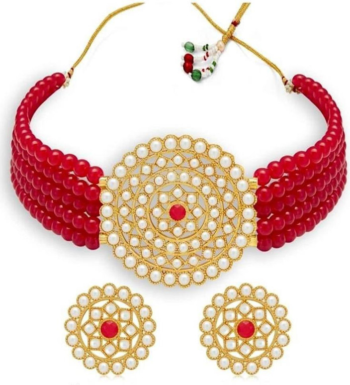 JewelShadi Red Party Wear Necklace Set For Women And Girls Alloy Great Deal