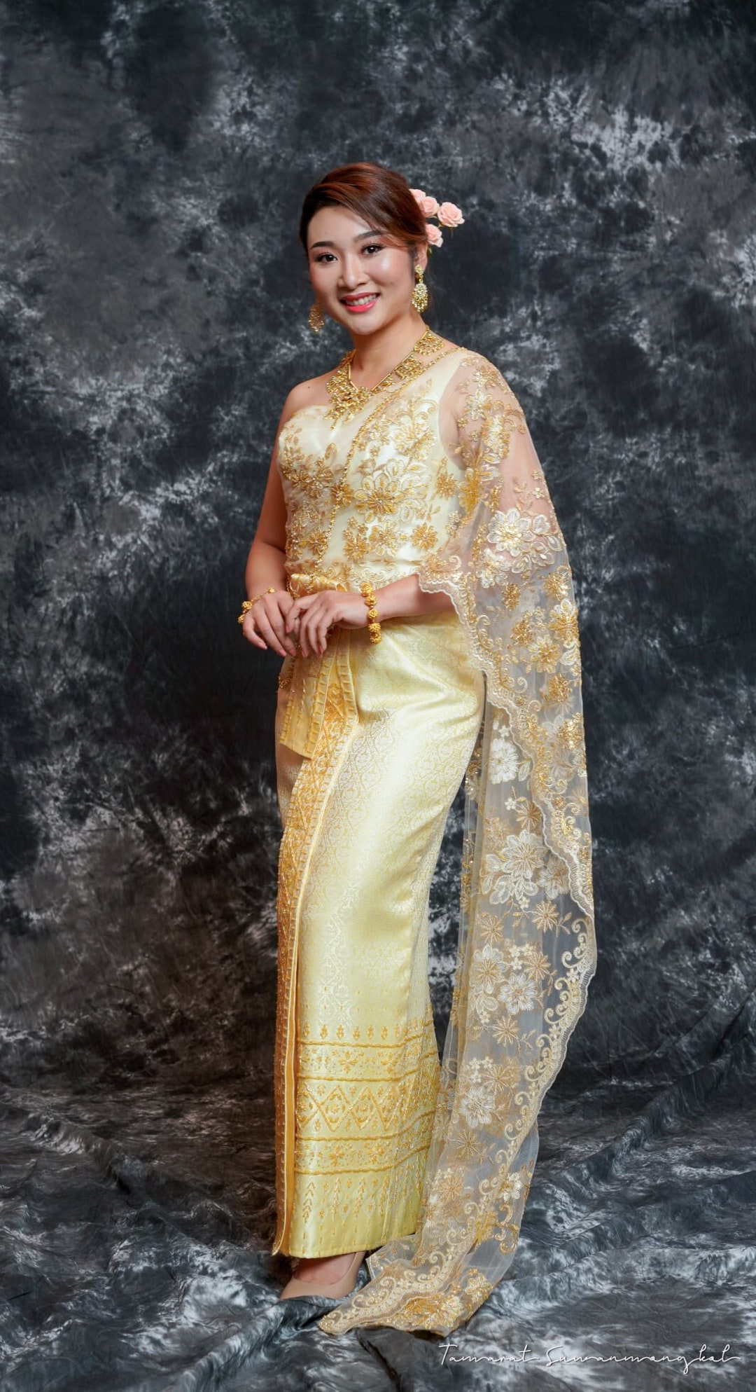 Traditional Thai Wedding Dress, Golden Lace Thai Wedding Dress