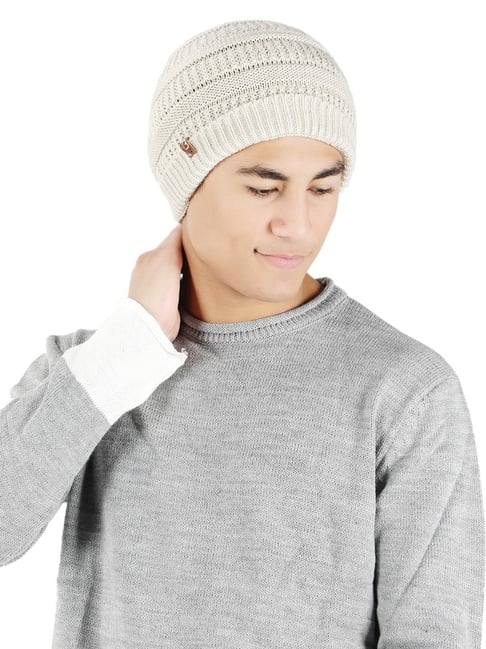 BHARATASYA Acrylic White Mens Winter Beanie Huge Discount
