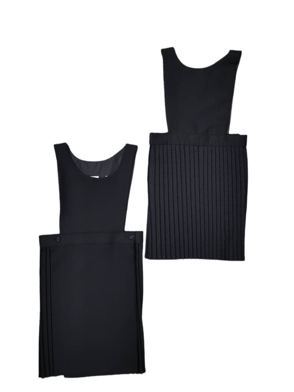Black Girls School Uniform Pleated Plain Bib Pinafore Dress