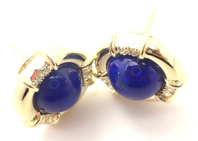 Tiffany and Co Diamond Lapis Lazuli Yellow Gold Earrings For Sale Mega Sale