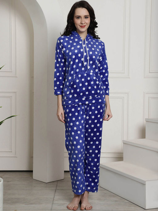 Buy Secret Wish Blue Polka Dots Winter Night Suit (Set of 2) Online