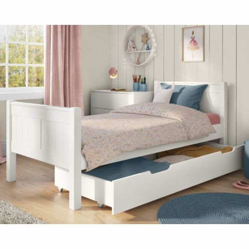 Stompa Classic Single Bed With Trundle Drawer in White