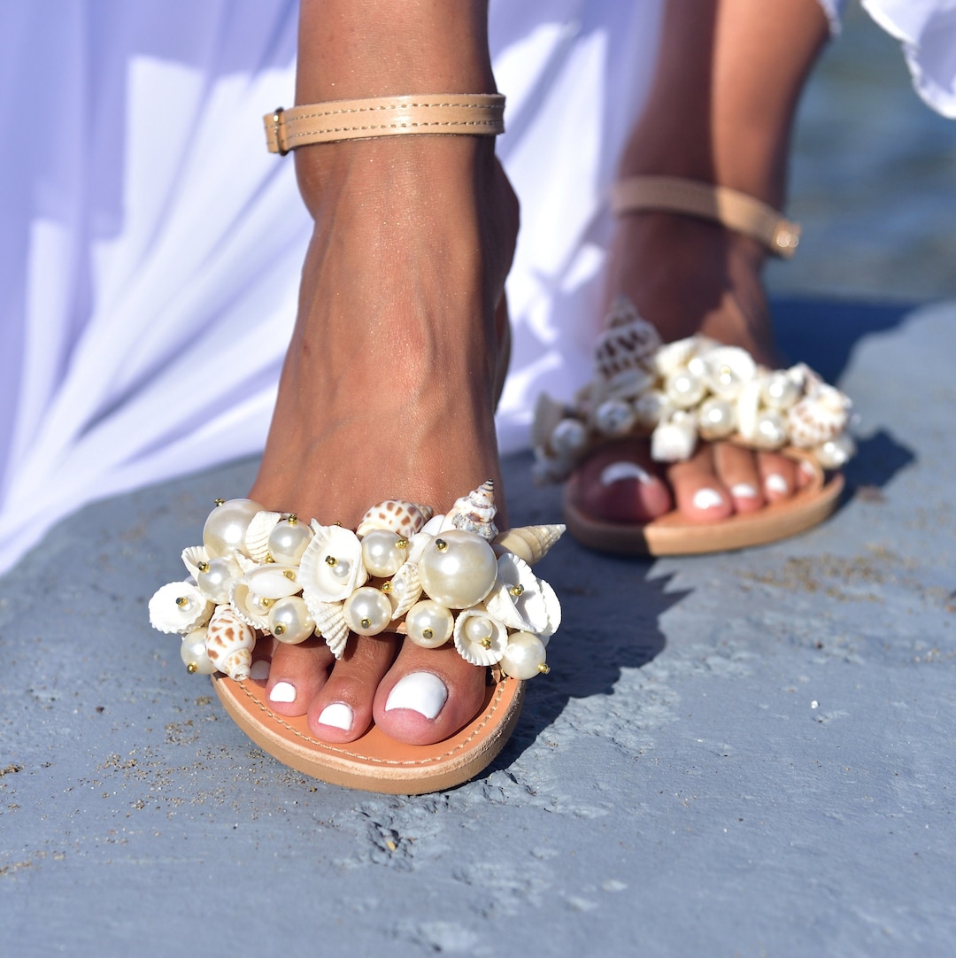 Seashell Wedding Sandals: Boho Bridal Shoes, Greek Leather