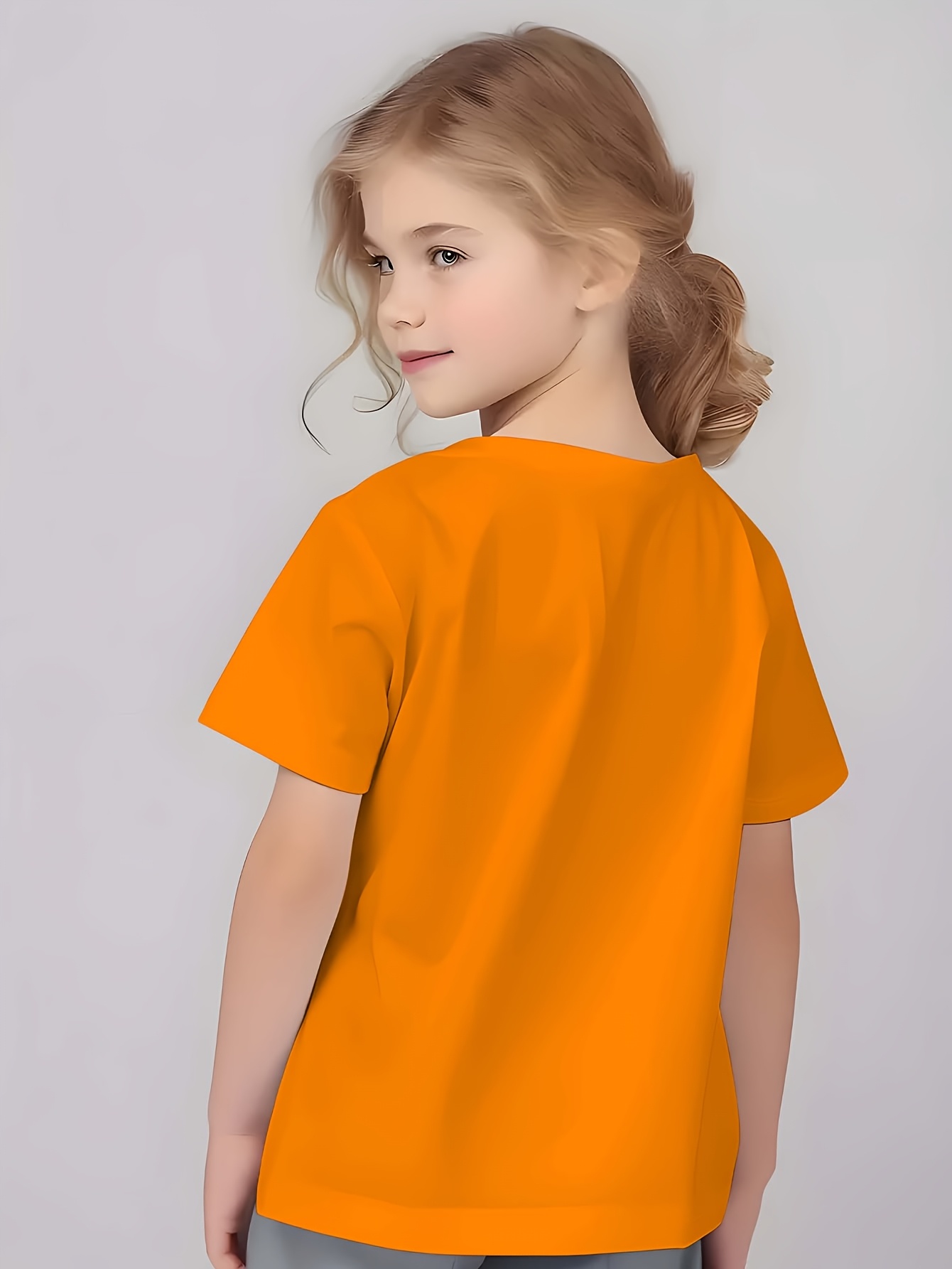 vibrant orange girls' short sleeve t shirt sparkling Temu New